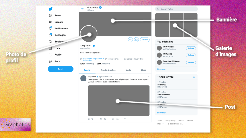 Lorsque quelqu’un scroll sur son fil Twitter et qu’il voit un de vos posts, vous devez garder en tête que Twitter recadre automatiquement l’image pour qu’elle s’adapte à un affichage dans le fil de l’application. C’est une fois que vous aurez cliqué sur l’image qu’elle s’affichera dans sa taille originale. On vous conseille donc d’adapter votre image au format 1200p x 675p pour qu’elle s’affiche entièrement dans un fil Twitter. En revanche, si c’est un visuel avec beaucoup de détails, vous devriez le garder dans sa taille originale.